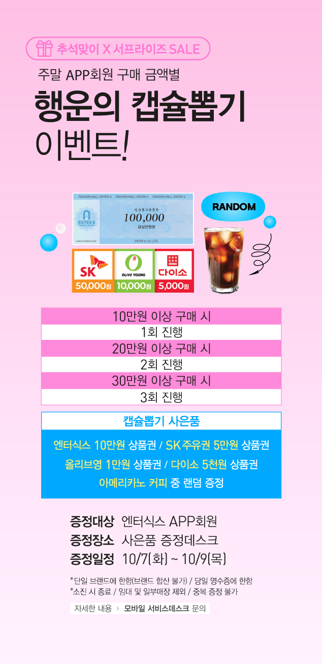[주말 APP회원] 구매 금액대별 행운의 캡슐뽑기 이벤트