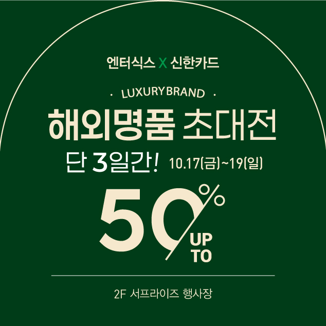 안양역점 SALE 프로모션 [지안] 등록일2025.10.14 [지안] 신한카드 & 엔터식스 VIP 고객 초대전-신한카드 우수고객 명품 최대 50%할인-샤넬 / 루이비통 / 프라다 / 구찌 / 롤렉스 등*2F 서프라이즈 행사장