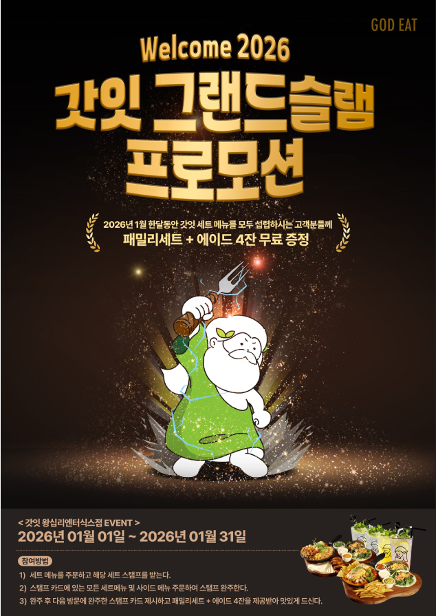 내용: 2026년 1월 한달동안 갓잇 모든 세트메뉴와 지정된 사이드메뉴를
